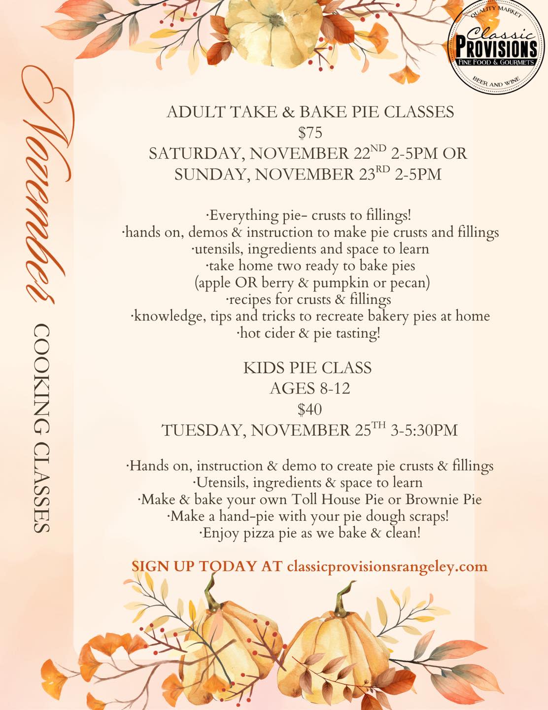 Everything Pie- crust to fillings! Hands-on demos & instructions to make pie crust and fillings, utensils, ingredients, and space to learn.