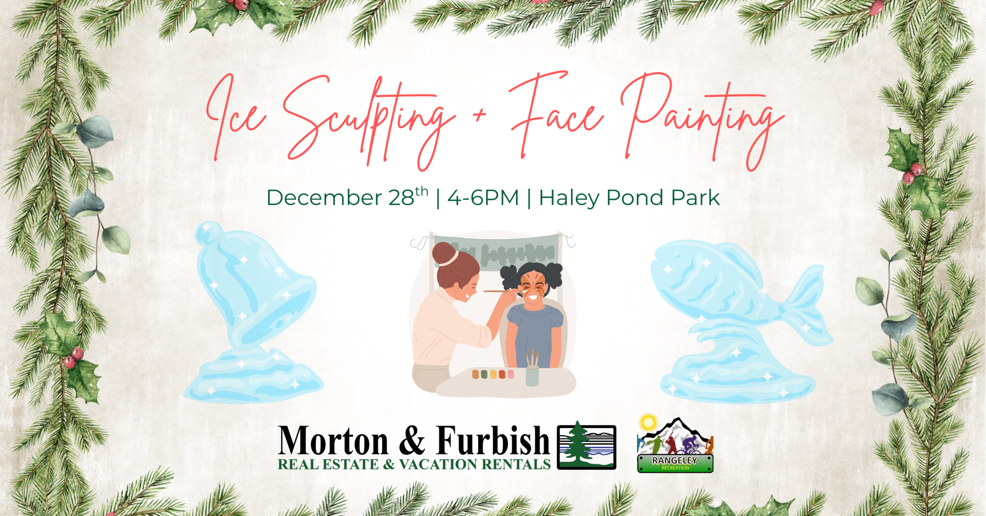 Join us for Ice Sculpting and Face Painting at Haley Pond Park on December 28th from 4:00 PM to 6:00 PM!