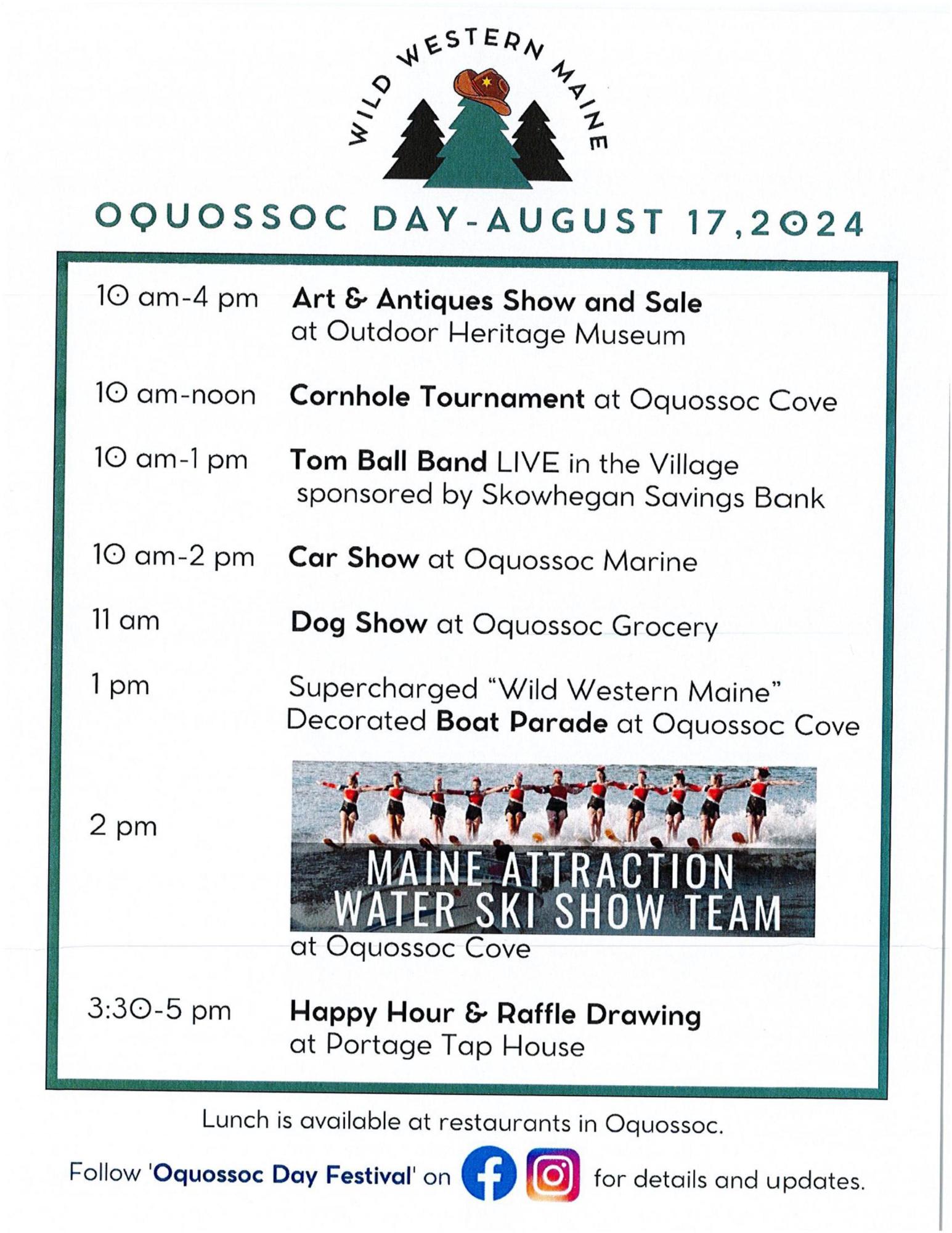 Enjoy a fun-filled day on the museum's grounds during the popular village-wide “Oquossoc Day.” Shop 40 vendors offering art, antiques, and crafts. The Outdoor Heritage Museum will be open for tours, so don’t forget to visit the gift shop as well. Vintage Dogs Maine will be here with their specialty hot dog food truck, too!