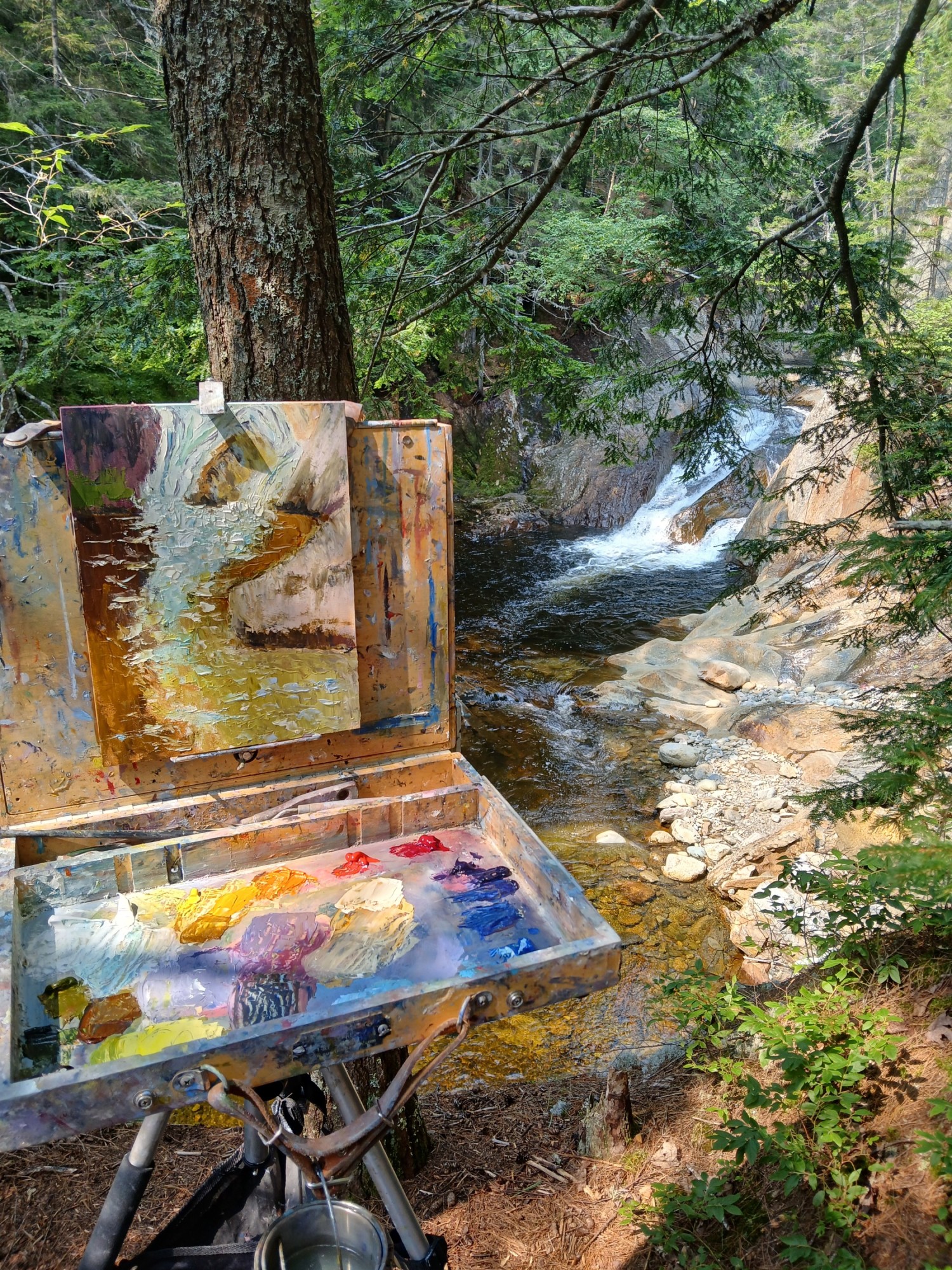 Come and join award-winning plein air painter Michael E. Vermette and paint from the Artists Trail in Rangeley, Maine. In this Plein Air Oil Painting workshop, you will hike to one spectacular conservation area each day and paint in outdoors in the unique geographical wonders of the Hatchery Brook Preserve, Small Falls and the falls found at Cascade Stream Gorge, the panoramic views of the South Bog and the hidden jewel of Rangeley Lake and the Height of Land. Michael will demonstrate each day and guide you through the technical and fundamental approaches used to successfully paint these unique Maine landscapes. There will be lots of personal one–on-one instruction from Michael’s generous and approachable style of teaching and daily group critiques. Absolutely no experience in painting in oil outdoors is required, although experienced oil painters are welcome to participate as well.