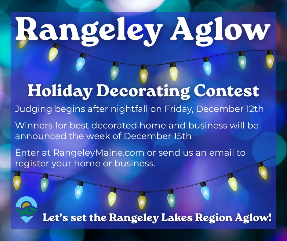 Help set Rangeley Aglow this year! The Chamber is hosting the 4th Annual Holiday Decorating Contest with mystery judges during Mountain Holly Days. A traveling trophy will be given to the winning business, and a prize will be awarded to the winning homeowner.