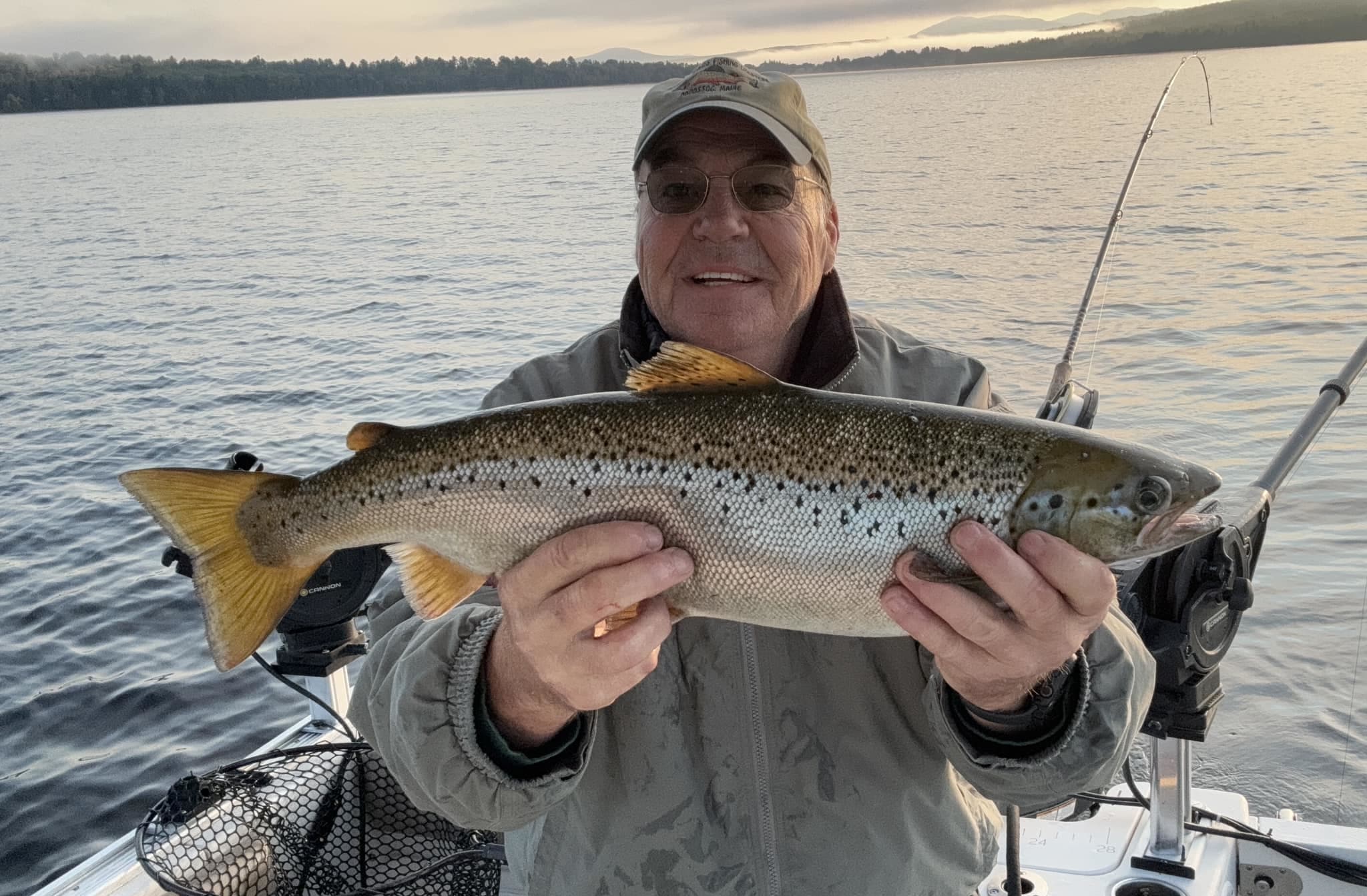 Enjoy a fully guided fishing trip on one of our Rangeley Region lakes with Maine Registered Guide and former owner of Rivers Edge Sports, Gerry White. We'll troll our legendary waters for landlocked salmon and brook trout aboard our fully equipped 20′ fiberglass center console boat, On The Edge”, which's equipped with all of the latest electronics, including multiple Humminbird fish finders, a Minn Kota electric trolling motor, and up to 4 Cannon electric downriggers. During the summer months, our landlocked salmon and brook trout can be found at depths of up to 70 feet, and we'll be sure to put you on the fish! We provide everything you'll need to land these spectacular fish. All you'll need to bring is warm clothing (early mornings can be chilly throughout the summer), rain gear, snacks and a fishing license that you can purchase locally or online at https://moses.informe.org/