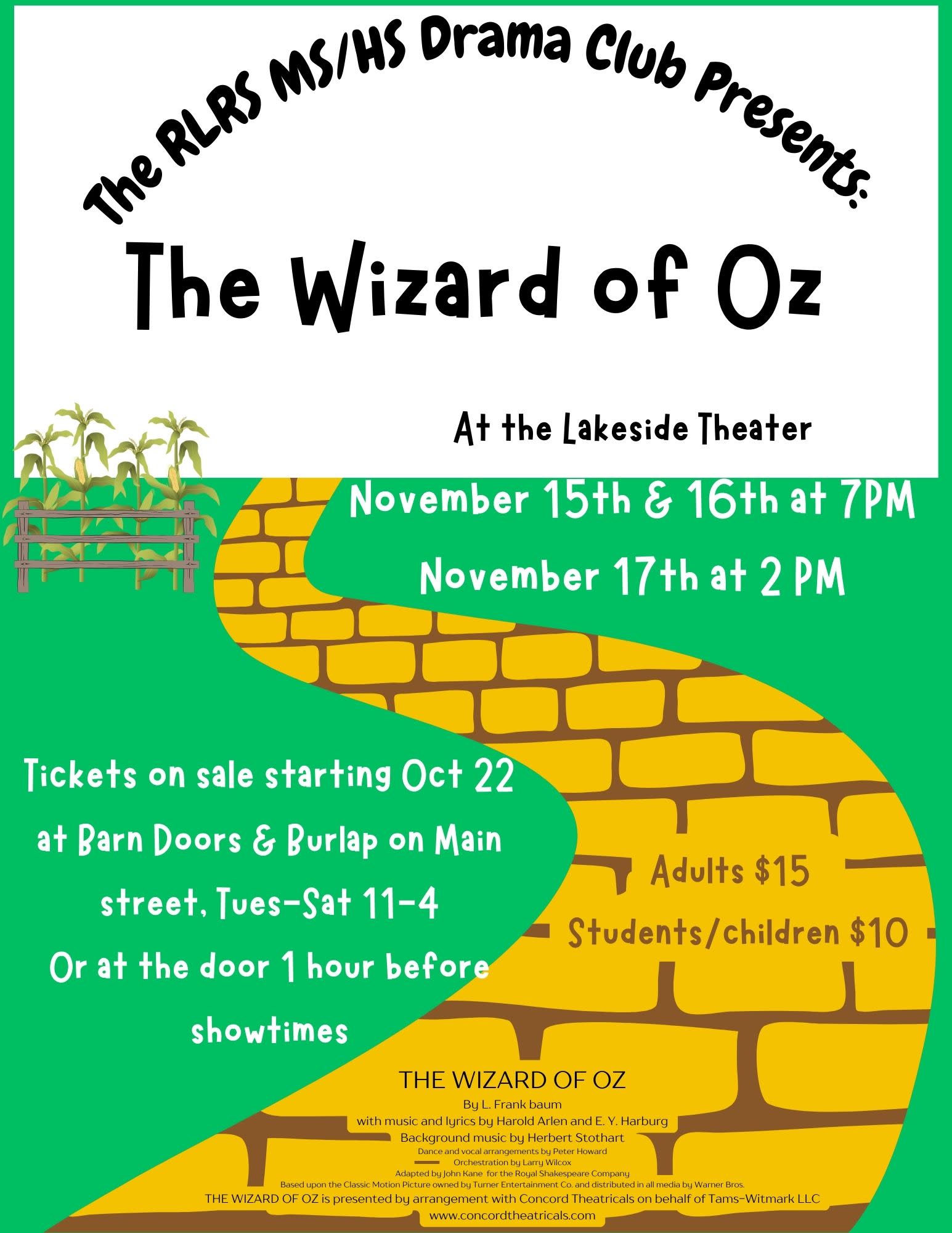 A Night of Live Theater and Nostalgic Wonder. Experience the classic story as told live by Rangeley's finest young performers! Based on the Classic 1930's film, this retelling of Dorothy's fantastical journey to Oz will bring back treasured memories and entertain with new delights. Introduce the new generation to the Wonderful Land of Oz, or enjoy a return trip yourself. A wonderful experience for both the young and young at heart!